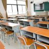 “Why ………. children in the classroom?” “They're all at the swimming-pool.”