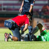 “Listen! I can hear …… for help.” “Yes, look! There's a man hanging from the cliff edge. He's going to fall!”